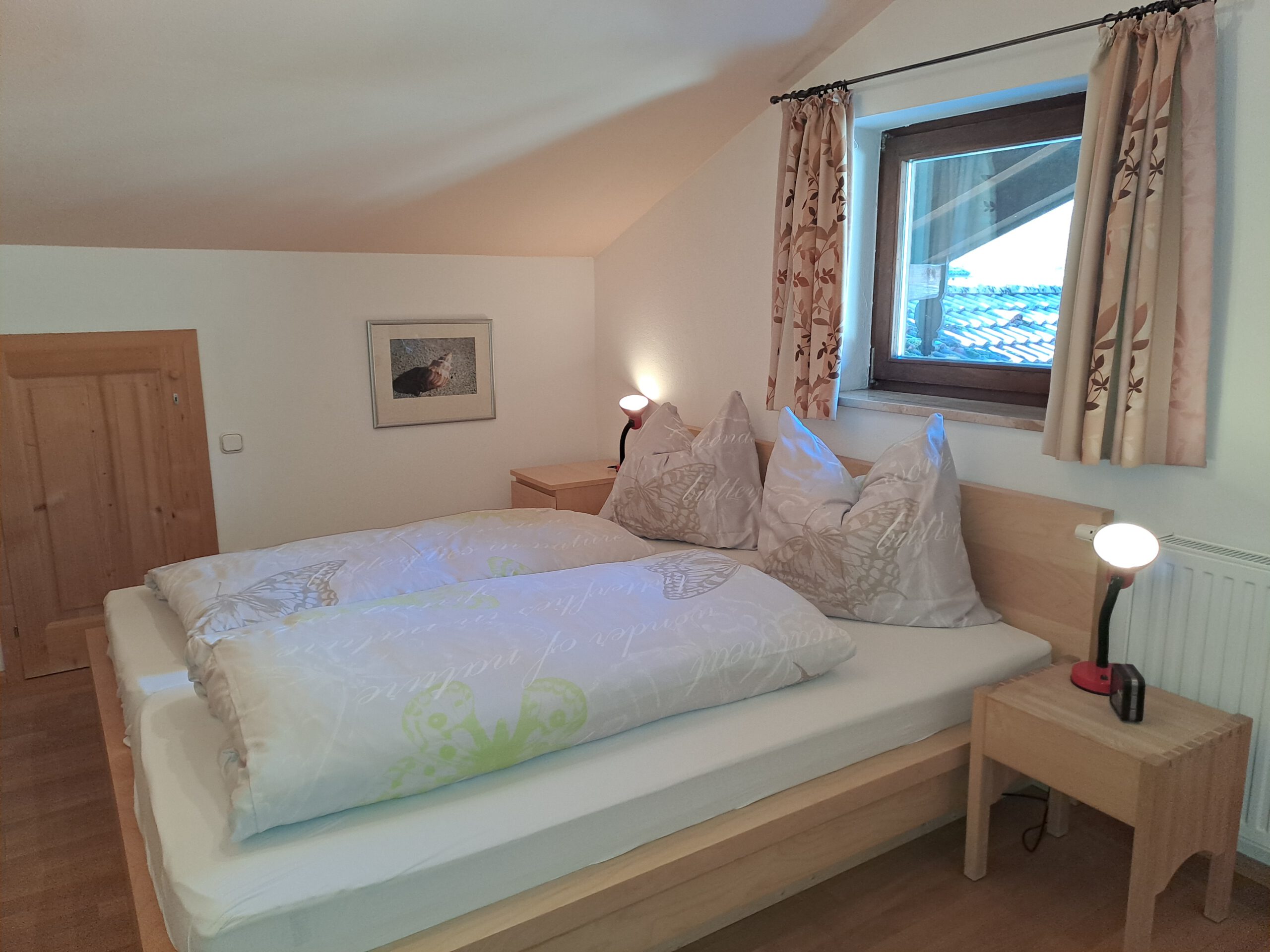 Die gemütlich eingerichtete Ferienwohnung mit einer Wohnfläche von 60 qm und Kabel-TV befindet sich im Dachgeschoss, 2. OG. Sie verfügt über eine komplett ausgestattete Küche, mit Esstisch und Wohnraum kombiniert, sowie über ein separates Schlafzimmer.